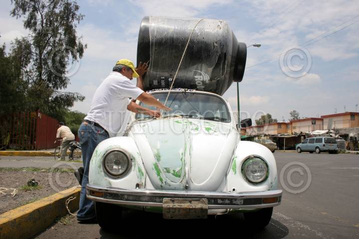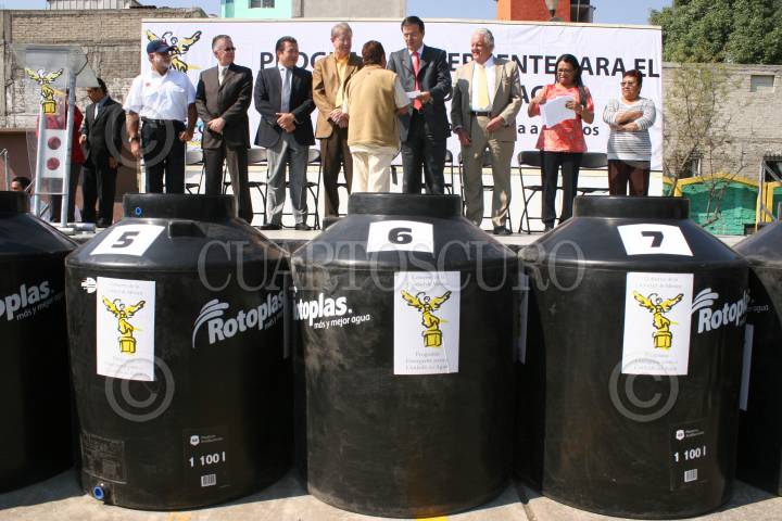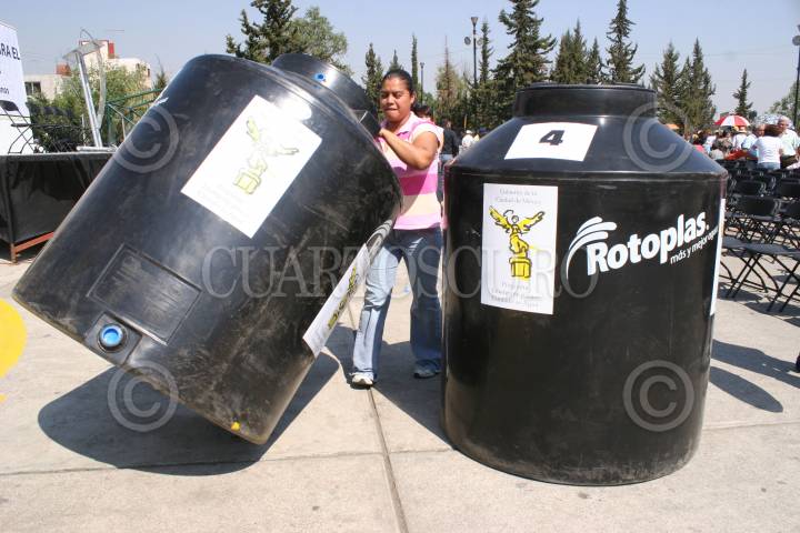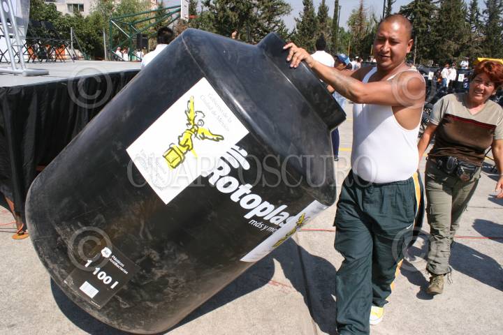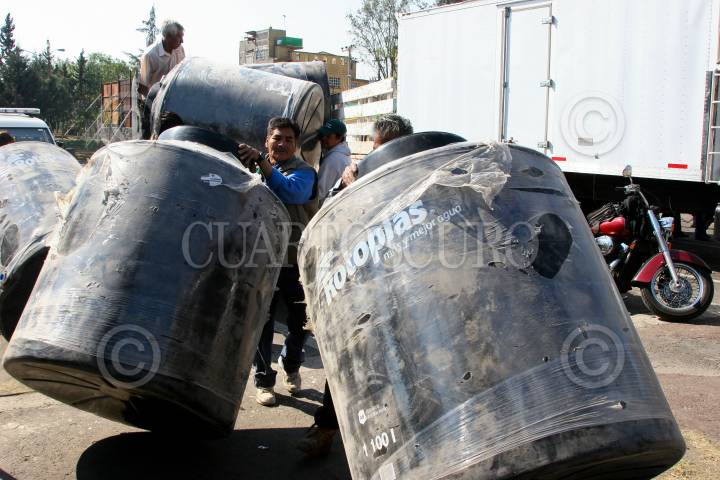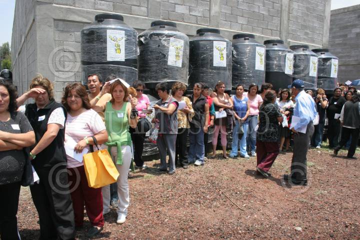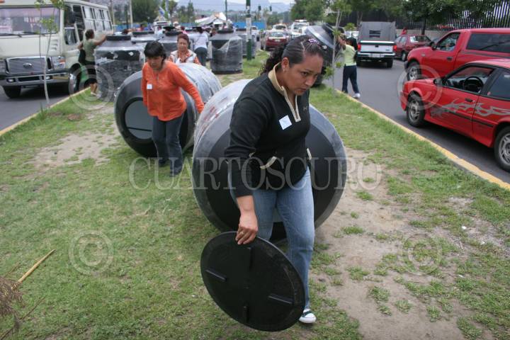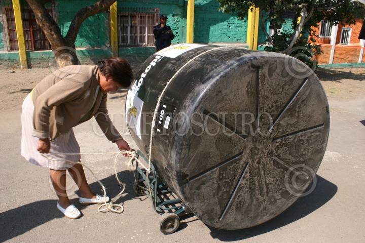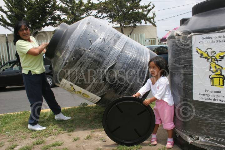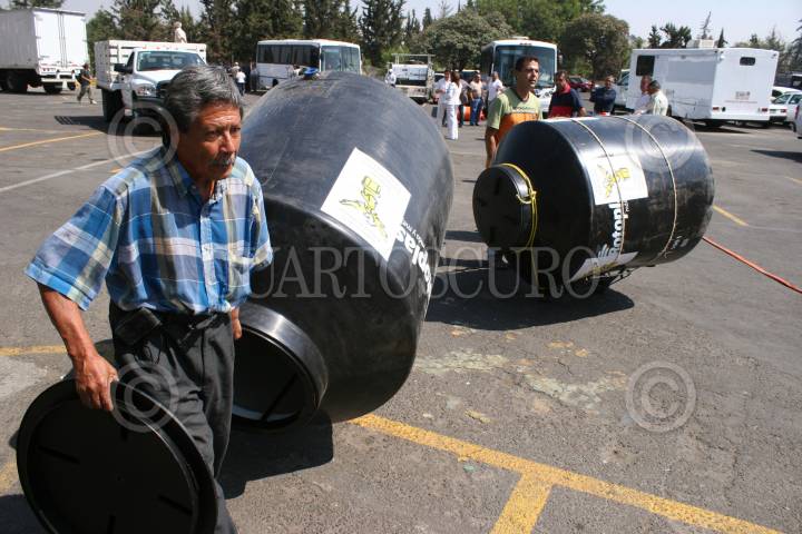MÉXICO, D.F., 17ABRIL2009.- Decenas de capitalinos de las colonias el Pedregal de Santa Ursula y Pedrgal de Santo domingo, recibieron tinacos como parte del nuevo nuevo plan para contrarrestar los efectos de escasez de agua en la capital del país y este consiste en regalar tinacos de mil 100 litros de capacidad a familias de escasos recursos que viven en aquellas zonas donde es frecuente la falta del vital líquido. FOTO: RICARDO CASTELAN/CUARTOSCURO.COM