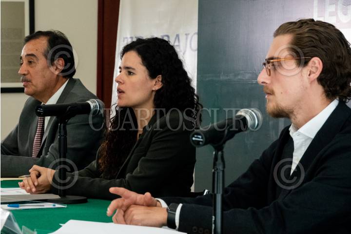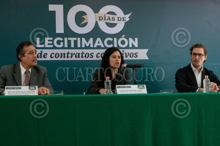 Luisa María Alcalde durante la conferencia de prensa para anunciar la compaña de 100 días de Legitimación de Contratos Colectivos.