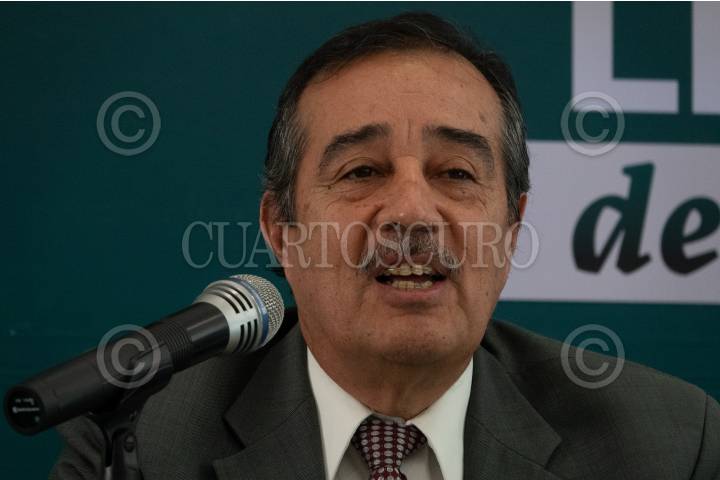 Alfredo Domínguez Marrufo durante la conferencia de prensa para anunciar la compaña de 100 días de Legitimación de Contratos Colectivos.
