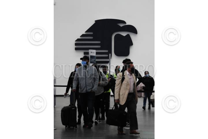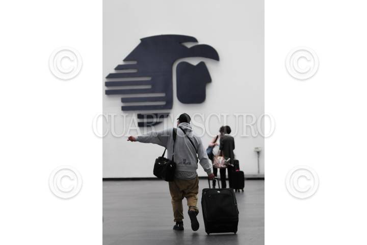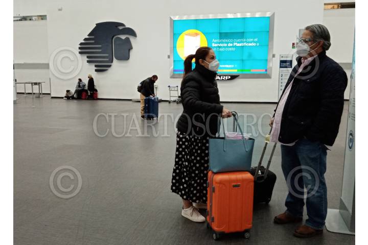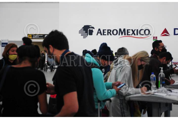Decenas de personas salen de la sala de espera de Aeromexico.