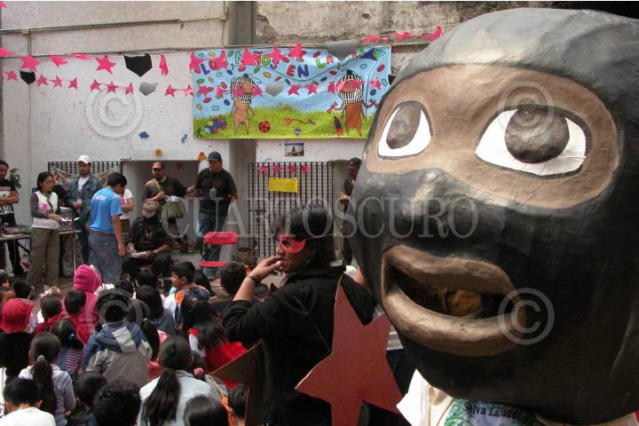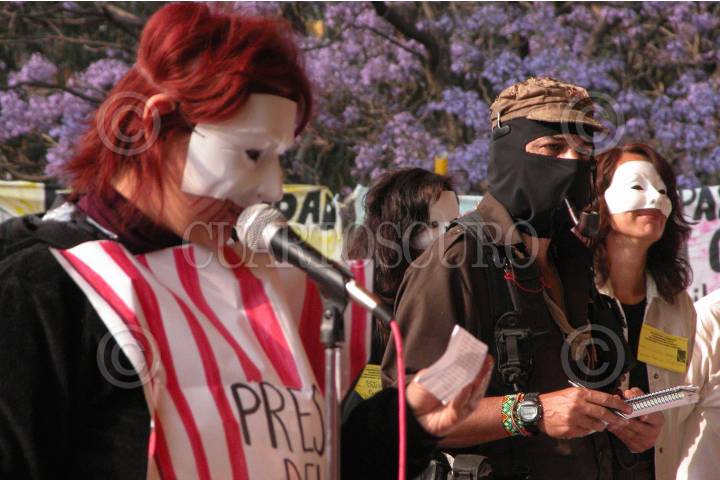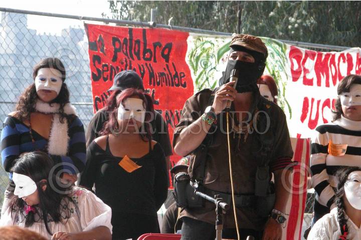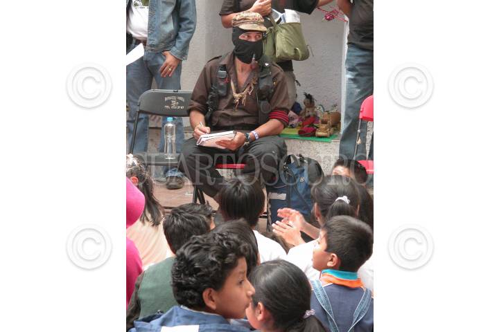 MEXICO, D.F. 30ABRIL2006.- El Sub Comandante Insurgente Marcos, delegado del EZLN para la Otra Campaña, se reunió con mujeres y niños en el foro cultural de contreas. FOTO:Valentín Rojo/CUARTOSCURO.COM