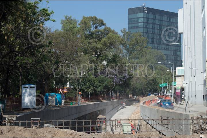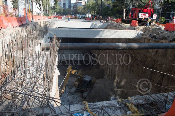 CIUDAD DE MÉXICO, 20ABRIL2017.- Continúan los trabajos de construcción para la conexión subterránea entre Insurgentes y Mixcoac. La obra conectará la incorporación de Insurgentes Sur con el nivel superior del doble túnel vial hacia Circuito interior Río Mixcoac, se espera que en días próximos sea liberado un carril en dirección hacia el norte para agilizar la vialidad en la zona. FOTO: SELENE PACHECO /CUARTOSCURO.COM