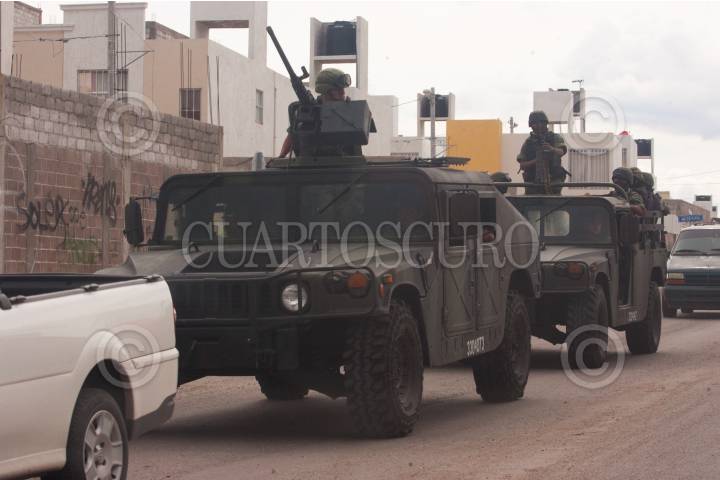 QUERÉTARO, QUERÉTARO, 02JULIO2010.- En la colonia Eduardo Loarca Castillo se observa presencia policiaca escoltada por el ejército en la principales avenidas de esta zona conurbada al norponiente de la capital. FOTO: DEMIAN CHÁVEZ/CUARTOSCURO.COM