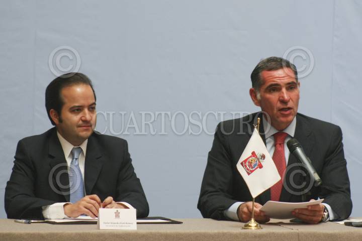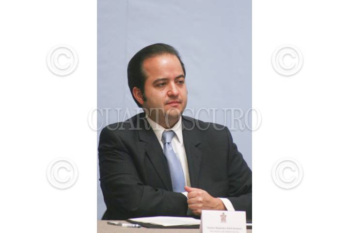 OAXACA, OAXACA 08MARZO2012.- El secretario de Gobernación, Alejandro Poiré ofreció una conferencia de prensa en compañía con el gobernador del Estado, Gabino Cué Monetagudo en el auditorio del Palacio de Gobierno. El encargado de la polítca interna al ser cuestionado acerca del caso de la francesa Florence Cassez, este puntualizó que el gobierno mexicano no hara un posicionamiento oficial al respecto de la resolución de la Suprema Corte de Justicia de la Nación (SCJN), de la cual dijo son respetuosos. FOTO: ARTURO PÉREZ ALFONSO /CUARTOSCURO.COM