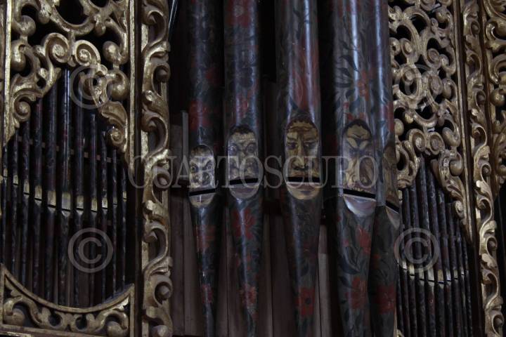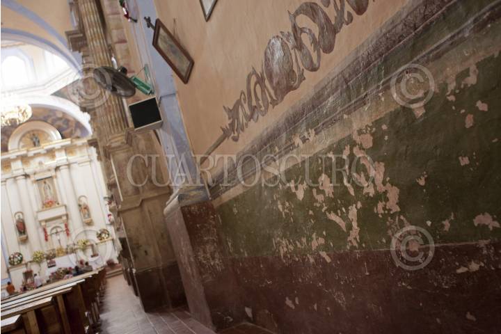 JALPAN DE SERRA, QUERETARO, 07ENERO2012.- La misión de Jalpan de Serra, iglesia construida en 1744 por la orden de los Agustinos y declarada Patrimonio de la Humanidad (2003), presenta daños en su interior, pues desde hace tiempo no se le da mantenimiento. Los vecinos exhortan a no rayar y destruir el inmueble que es símbolo del barroco mexicano y atractivo turístico del lugar, declarado "Pueblo mágico" desde 2010. FOTO: DEMIAN CHAVEZ/CUARTOSCURO.COM