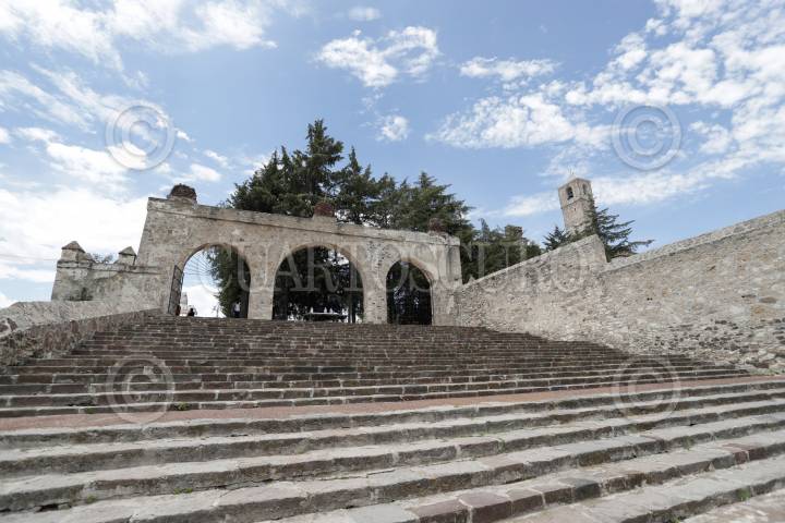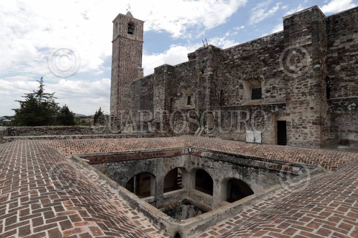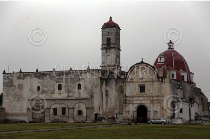 JONACATEPEC, MORELOS, 17SEPTIEMBRE2017.-Conjunto conventual San Agustín, en la fachada y campanario se puede observar huellas de disparos de la época de la Revolución. FOTO: MARGARITO PÉREZ RETANA /CUARTOSCURO.COM