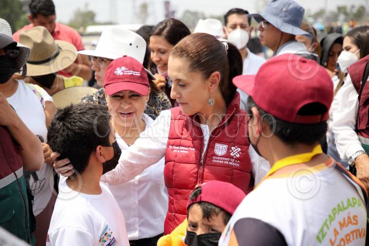 Claudia Sheinbaum, jefa de Gobierno, y Clara Brugada, alcaldesa de Iztapalapa, se reunieron con niños y niñas en el parque Cuitláhuac con motivo de la celebración del día del niño.