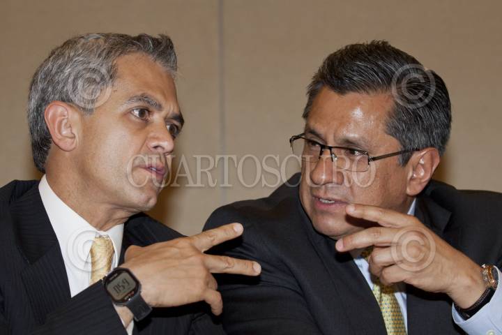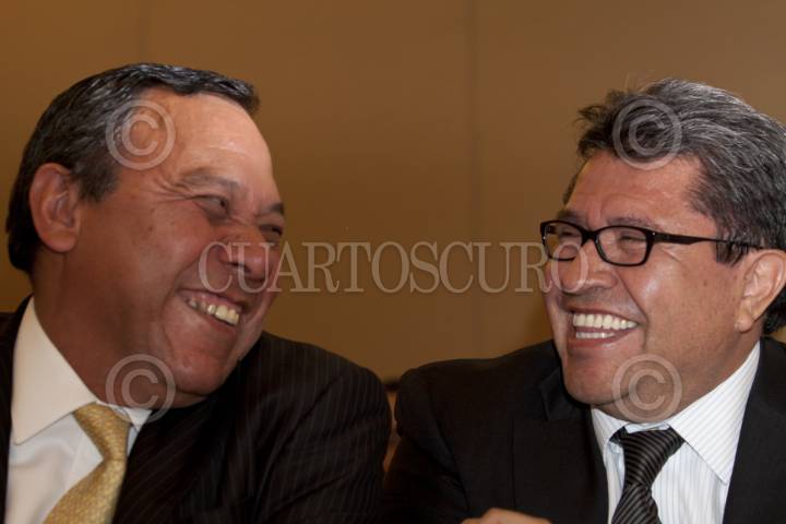 MÉXICO, D.F., 19ENERO2012.- Gerardo Fernandez Noroña y Marti Batres durante el anuncio de que Miguel Ángel Mancera, exprocurador de Distrito Federal resulto ganador de la encuesta con cual se convierte en el candidato del Movimiento Progresista, por parte del PRD. FOTO: RODOLFO ANGULO/CUARTOSCURO.COM