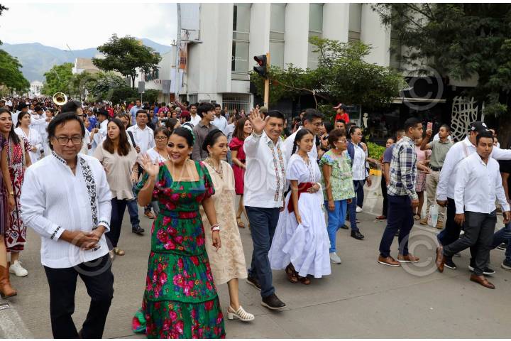Se realizó un convite para anunciar el inicio de la fiestas de julio, mes de la Guelaguetza en la ciudad de Oaxaca. El gobernador del estado, Salomón Jara Cruz y funcionarios públicos, acompañaron la calenda.