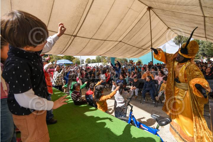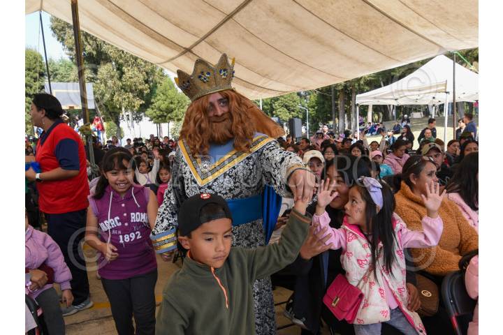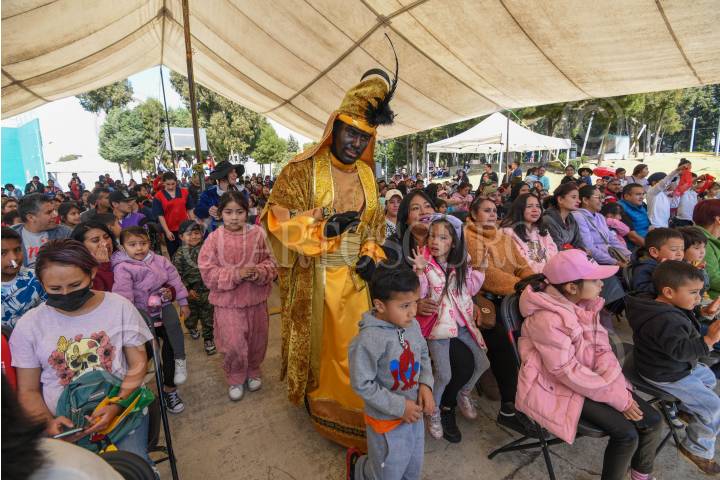 METEPEC, ESTADO DE MÉXICO, 05ENERO2025.- Los Reyes Magos llegaron a Metepec y convivieron con niños de diversas colonias, llevándoles alegría, juegos y regalos a cada uno de los pequeños. FOTO: CRISANTA ESPINOSA AGUILAR /CUARTOSCURO.COM
