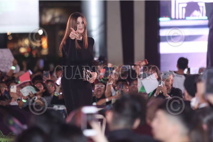 NAUCALPAN, ESTADO DE MÉXICO, 14AGOSTO2024. La actriz Monica Bellucci convive con fans durante el Fan Event y alfombra blanco y negro de la película “Beetlejuice, Beetlejuice”, en su gira de promoción mundial, previo a su estreno en cines. FOTO: EDGAR NEGRETE LIRA/CUARTOSCURO.COM