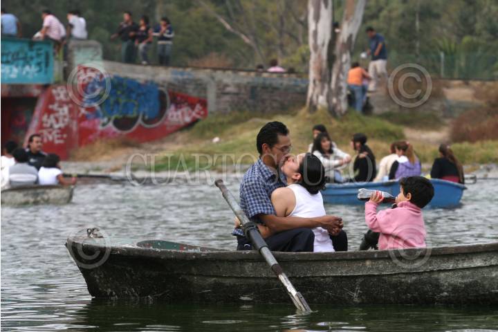 MÉXICO D.F. 25DICIEMBRE2007.-Para convivir entre ellos decenas de familias acudieron al Bosque de Aragón, durante este día de asueto.En la imagen una paraja se besa al pasear en lancha en lago del bosque. FOTO: GUILLERMO PEREA/CUARTOSCURO.COM FOTO: GUILLERMO PEREA/CUARTOSCURO.COM