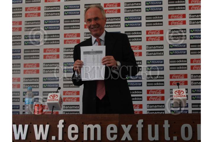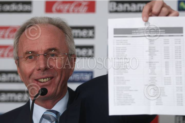 MÉXICO D.F., 28AGOSTO2008.- En conferencia en el centro de alto rendimiento pegaso, el técnico de la selección mexicana Sven Goran Eriksson dio la lista de convocados para la alineación tricolor, para los partidos de visita ante Jamaica y de local ante Canadá, el primero en Kingston el día 6 de septiembre y el segundo en Tuxtla Gutiérrez el 10. FOTO: SÁSHENKA GUTIÉRREZ/CUARTOSCURO.COM