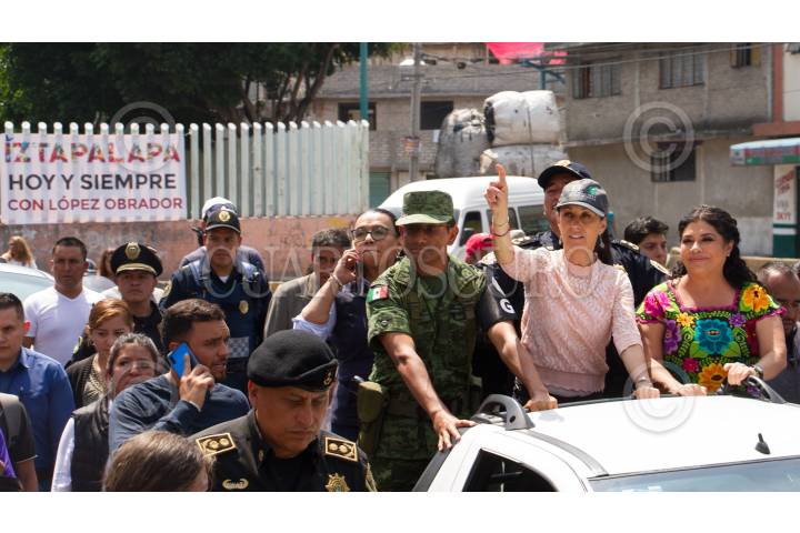CIUDAD DE MÉXICO, 04JULIO2019.- David Ramírez Piñón, general al mando de la coordinación regional de la Guardia Nacional en la ciudad; Clara Brugada, alcaldesa de Iztapalapa y Claudia Sheinbaum, jefa de gobierno, encabezaron el despliegue, de la Guardia Nacional en la colonia Desarrollo Urbano Quetzalcóatl, de la alcaldía Iztapalapa, cabe destacar que esta colonia fue elegida por su alto índice delictivo. FOTO: ROGELIO MORALES /CUARTOSCURO.COM