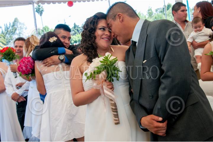 MÉXICO, D.F., 28FEBRERO2015.- Ceremonia de matrimonios colectivos en la explanada de la Delegación Venustiano Carranza donde 500 parejas se dieron el primer beso como esposos. Durante el evento los cónyuges fueron consentidos con mariachi, hubo brindis de honor y regalaron viajes de lunas de miel. FOTO: DIEGO SIMÓN SÁNCHEZ /CUARTOSCURO.COM