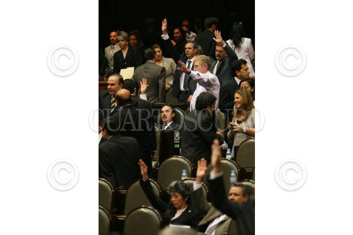 MÉXICO D.F. 18OCTUBRE2007.-Emilio Gamboa Patrón coordinador de los diputados del PRI emite su voto junto con Javier González Garza coordinador de la bancada del PRD, esto durante la sesión en la Cámara de Diputados donde se dictamina el presupuesto para el 2008. FOTO: GUILLERMO PEREA/CUARTOSCURO.COM