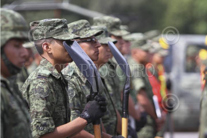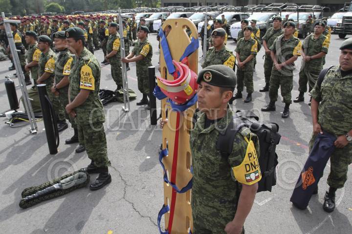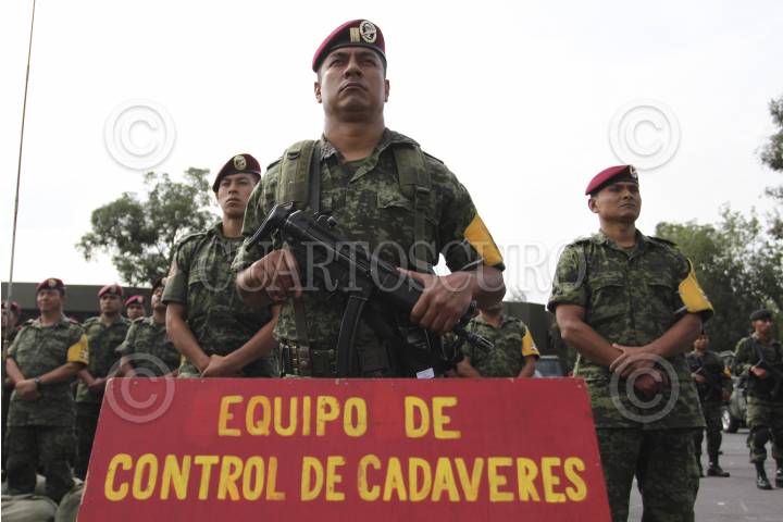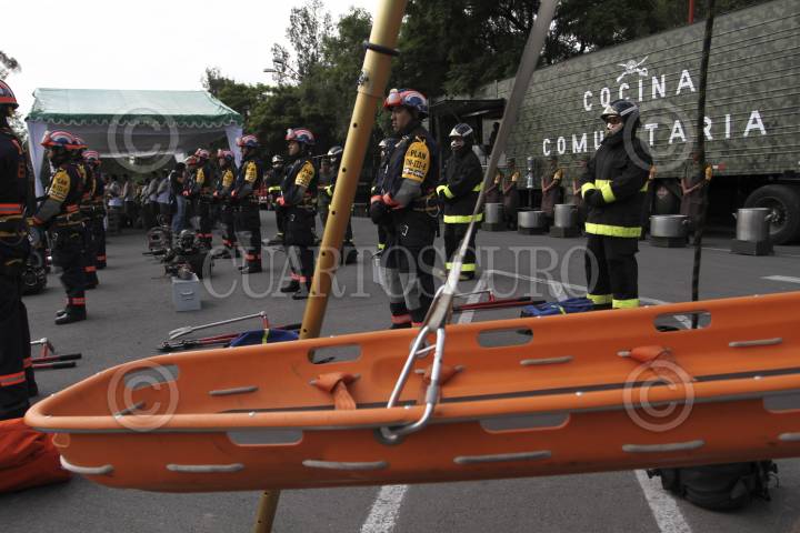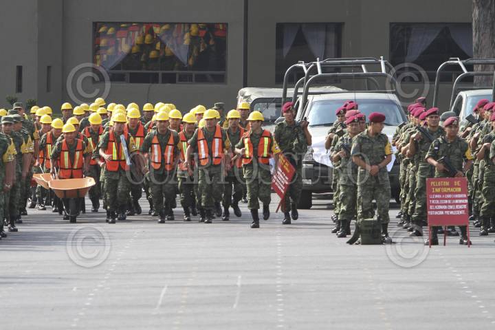 MÉXICO, D.F., 19SEPTIEMBRE2012.- Con la activación del Centro Coordinador de Operaciones de Área Centro en la instalaciones del Campo Militar n0. 1-1, la Sedena conmemoro el XXVII Aniversario Luctuoso del Sismo de 1985, en el que participarían más de mil elementos del ejercito y personal del IMSS secretaria de Salud y Cruz Roja en caso de un sismo de gran magnitud. FOTO: GUILLERMO PEREA /CUARTOSCURO.COM