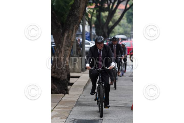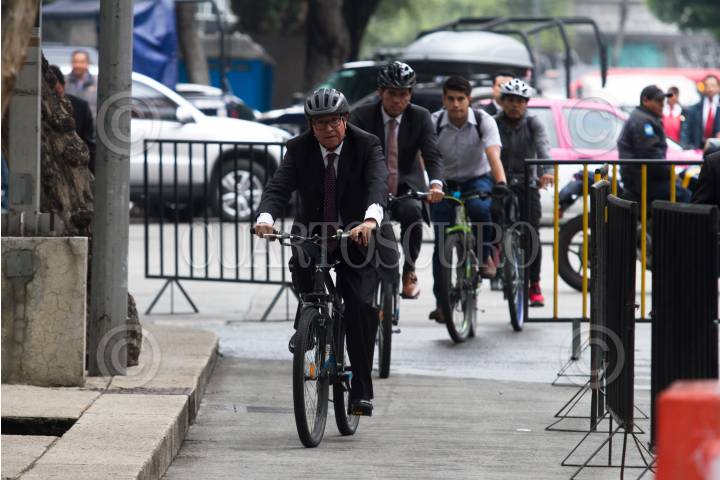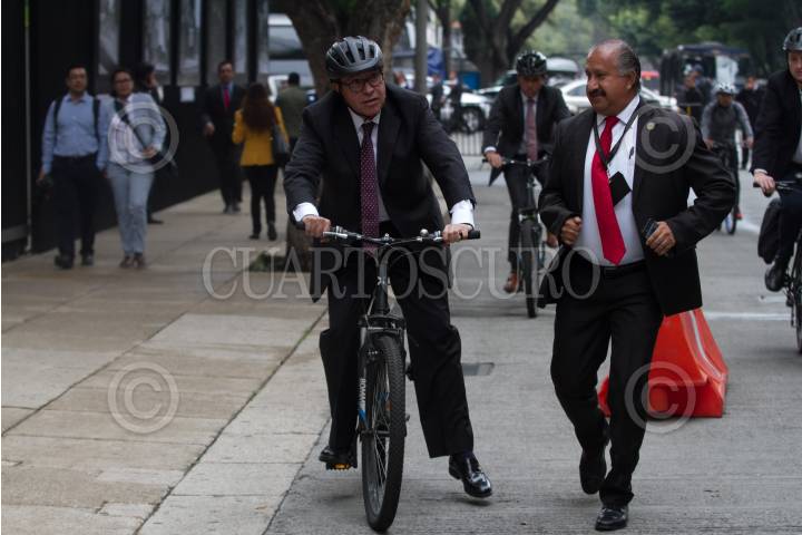 CIUDAD DE MÉXICO, 29AGOSTO2018.- Ricardo Monreal, coordinador de los senadores de Morena, llegó en bicicleta al recintos parlamentario, ubicado en Reforma e Insurgentes, hoy pasado el medio día los integrantes de la 64 Legislatura tomaron protesta en ambas cámaras. FOTO: MOISÉS PABLO /CUARTOSCURO.COM