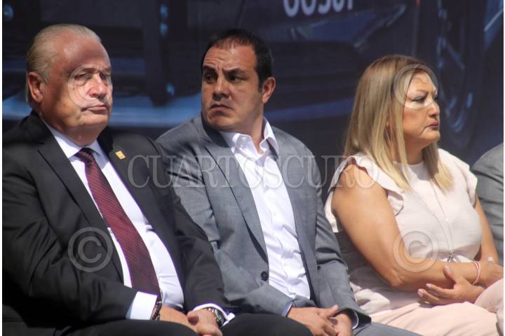 CUERNAVACA, MORELOS, 13MARZO2019.- El gobernador del estado, Cuauhtémoc Blanco Bravo encabezó la entrega y firma de convenio de Mando Coordinado Policía Estatal Morelos, al cual asistió el gabinete y los presidentes municipales de 31 de 34 municipios. En la imagen lo acompañan el jefe de la oficina de la gobernatura, José Manuel Sanz, y la presidenta del Tribunal Superior de Justicias, María del Carmen Cuevas López. FOTO: MARGARITO PÉREZ RETANA /CUARTOSCURO.COM