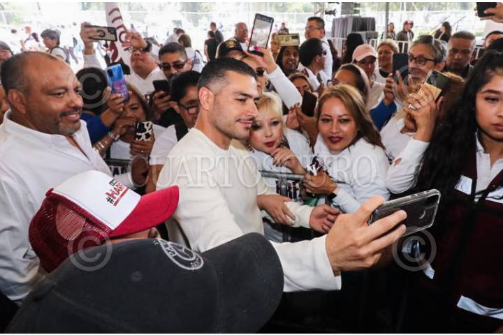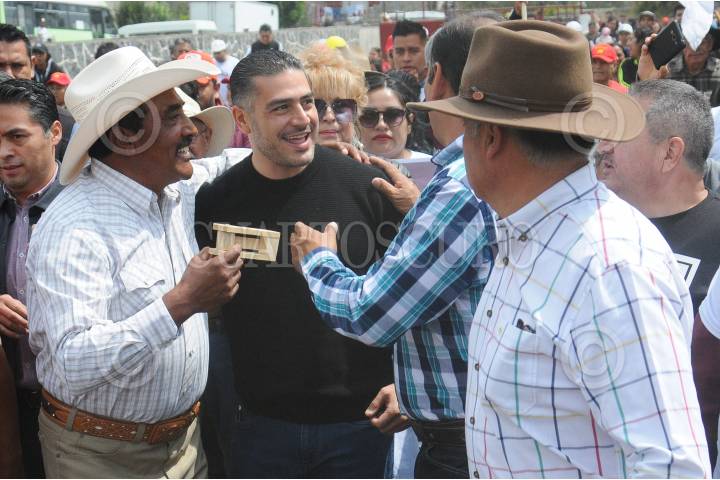 CIUDAD DE MÉXICO, 01OCTUBRE2023. - Habitantes del pueblo de San Nicolás Totolapan en la Magdalena Contreras reciben a Omar García Harfuch en el Lienzo Charro de la localidad. FOTO: DANIEL AUGUSTO /CUARTOSCURO.COM