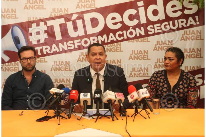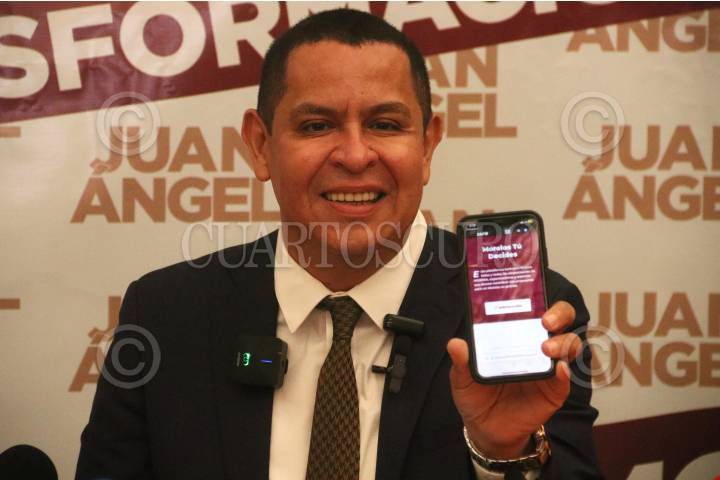 CUERNAVACA, MORELOS, 10OCTUBRE2023.- Juan Ángel Flores Bustamante, alcalde del municipio de Jojutla y aspirante a la coordinación estatal de la 4T durante la conferencia de prensa donde presento la plataforma "Morelos Tú Decides", que tiene como fin que sus simpatizantes participen en la construcción del proyecto de gobierno del próximo sexenio. FOTO: MARGARITO PÉREZ RETANA / CUARTOSCURO.COM
