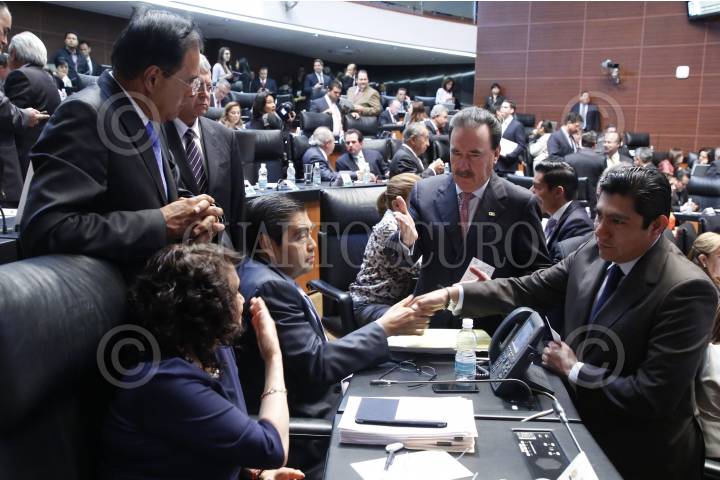 MÉXICO, D.F., 08ABRIL2014.- Los senadores Dolores Padierna, Ángel Benjamín Robles, Manuel Camacho Solís, Miguel Barbosa, coordinador PRD, Emilio Gamboa Patrón, coordinador del PRI y Jorge Luis Preciado, coordinador del PAN, durante la sesión en la Cámara de Senadores. FOTO: CUARTOSCURO.COM