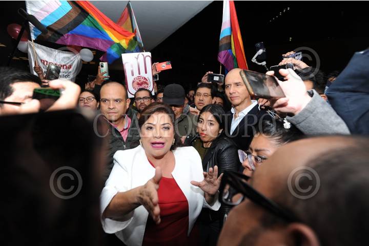 CIUDAD DE MÉXICO, 11NOVIEMBRE2023.- Tras el nombramiento de Clara Brugada,como coordinadora de la 4T en la Ciudad de México, simpatizantes de la oriunda de Iztapalapa acudieron al Hotel Camino Real en Polanco para festejar su asignación. FOTO: ROGELIO MORALES /CUARTOSCURO.COM