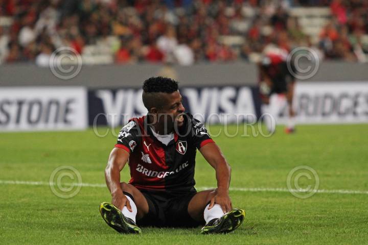 GUADALAJARA, JALISCO. 17FEBRERO2015.- En la imagen el jugador del Atlas de Guadalajara (México), Marcos Da Silva, se queja por una falta, esto en partido correspondiente a la Fecha 1 de la Copa Bridgestone Libertadores, en donde se enfrentan los equipos del Atlas de Guadalajara (México) frente al Independiente de Santa Fe (Colombia), que se celebra en el Estadio Jalisco. FOTO: FERNANDO CARRANZA GARCIA/CUARTOSCURO.COM