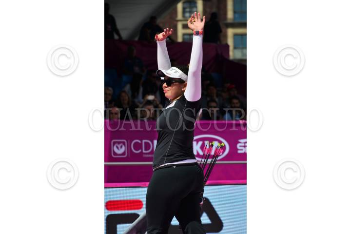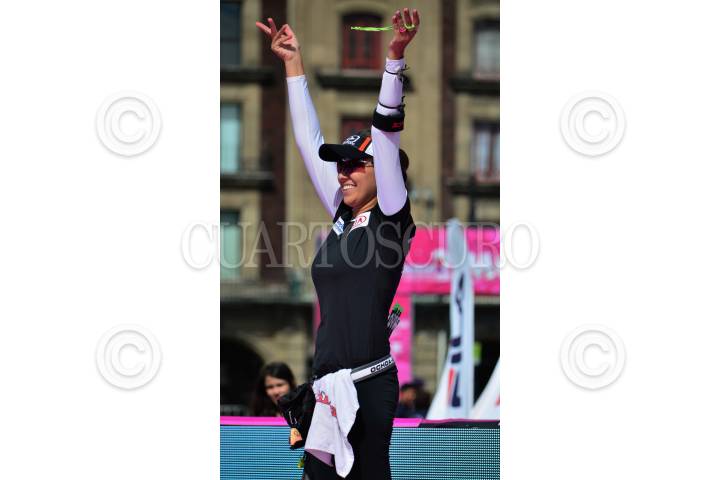 MÉXICO, D.F., 23OCTBRE2015.- En la imagen, la colombiana Sara López, quien obvtuvo el primer lugar y oro en la Copa Mundial de Tiro con Arco 2015. Mañana se realizará la última etapa en el Zócalo capitalino. FOTO: MARÍA JOSÉ MARTÍNEZ /CUARTOSCURO.COM