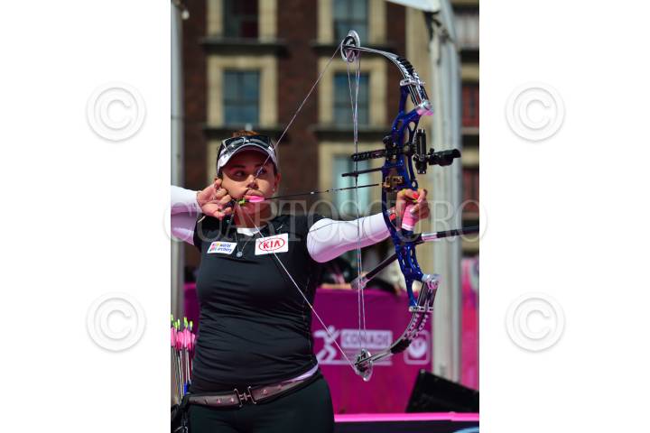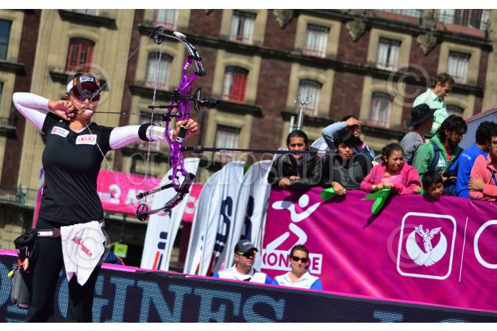 MÉXICO, D.F., 24OCTUBRE2015.- La arquera mexicana Stephanie Salas compite también en la Copa Mundial de Tiro con Arco 2015 en el Zócalo Capitalino. FOTO: MARÍA JOSÉ MARTÍNEZ /CUARTOSCURO.COM