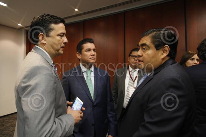 CIUDAD DE MÉXICO, 08DICIEMBRE2016.- Miguel Barbosa Huerta, coordinador de los senadores del PRD conversó con Ramiro Ramos presidente de la Conferencia Permanente de Congresos Locales (COPECOL), después de la reunión de la Comisión de Justicia en el Senado de la República. FOTO: CUARTOSCURO.COM