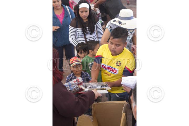 MÉXICO, D.F., 06ENERO2016.- Cientos de niños acudieron a la explanada de la delegación Cuauhtémoc para recibir un juguete de Reyes Magos, los pequeños tenían que ir acompañados de un adulto con copia de una credencial del INE de sus padres que corroborara que eran vecinos de la delegación. FOTO: MOISÉS PABLO /CUARTOSCURO.COM