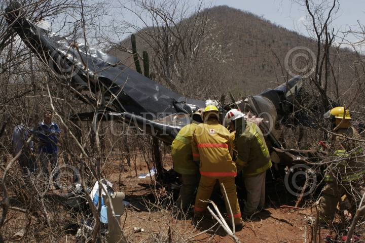 CULIACAN, SINALOA 24 DE MAYO DEL 2009.- Dos muertos fue el saldo que dejó una avioneta tipo Sedna 180 con matrícula XB-TXY al estrellarse en el poblado El Realito perteneciente a la sindicatura de San Lorenzo cuando lanzaba propaganda polítca a favor del Partido Acción Nacional. En el lugar perdieron la vida el piloto Efrén Picos y el copiloto Samuel Escobosa. FOTO: IVAN STEPHENS/CUARTOSCURO.COM