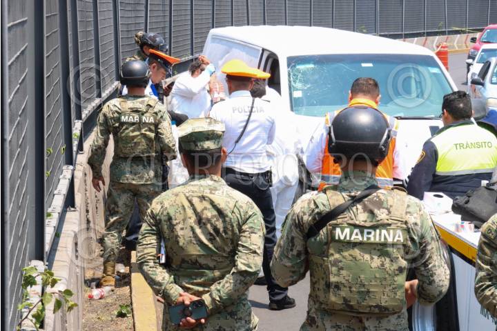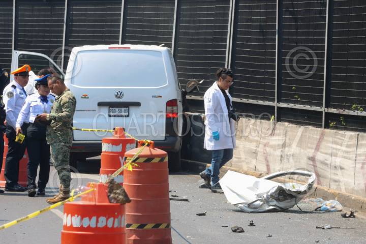 CIUDAD DE MÉXICO, 04MAYO2024.- Una mujer que viajaba como copiloto en una camioneta murió tras estrellarse contra el muro de contención del circuito de la terminal 1 a la 2 del Aeropuerto Internacional de la Ciudad de México. FOTO: ROGELIO MORALES/CUARTOSCURO.COM