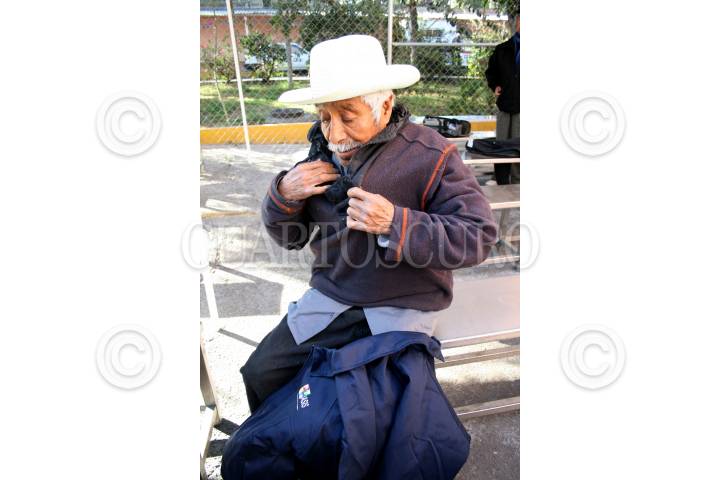 MÉXICO,D.F08 ENERO2007.- Un Indigente se prueba la chamarra que le fué osbequiada esta mañana con el fin de combatir las bajas temperaturas. FOTO: SASHENKA GUTIERREZ/CUARTOSCURO.COM