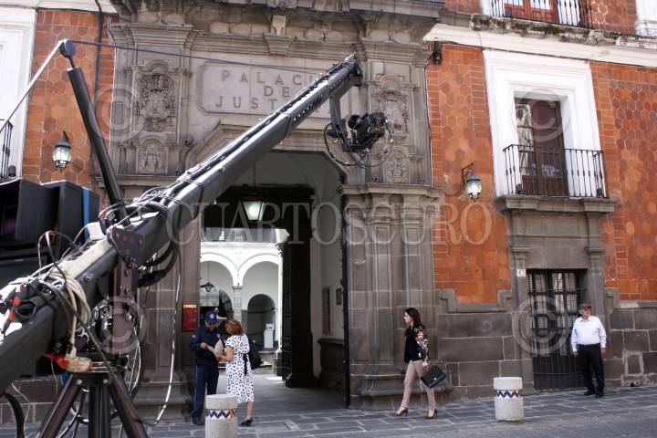 PUEBLA, PUEBLA., 23NOVIEMBRE2015.- Graban escenas de la telenovela de Televisa Corazón que Miente en el Tribunal Superior de Justicia de Puebla; protagonizada por la actiz Thelma Madrigal y Pablo de Lyle. FOTO: HILDA RÍOS/ CUARTOSCURO.COM