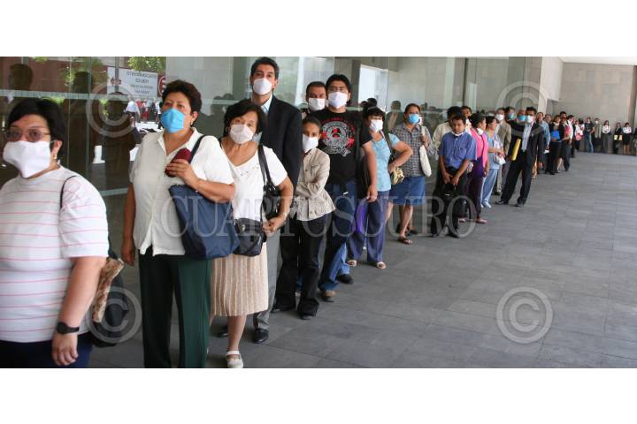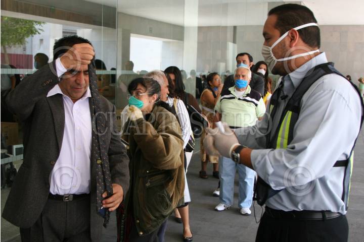 MÉXICO, .D.F,. 06MAYO2009.- En los tribunales de justicia, oficinas de gobierno y secretarias, las medidas de prevención contra el contagio de la influenza fueron muy rigurosas lo que provoco grandes filas de todas aquellas personas que quisieran ingresar a estos lugares, otra de las prevenciones es que queda prohibido el uso de corbatas ya que representan un nido para la incubación del virus de la influenza humana. FOTO: RICARDO CASTELAN/CUARTOSCURO.COM