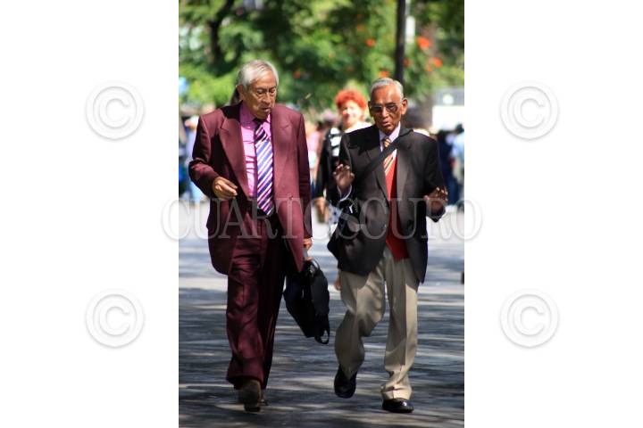 CUERNAVACA, MORELOS, 23AGOSTO2018.- Dos hombres mayores vestidos con traje y corbata caminan por una calle céntrica de la ciudad. FOTO: MARGARITO PÉREZ RETANA /CUARTOSCURO.COM