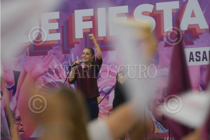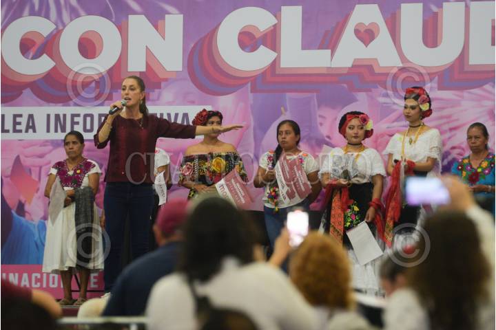 Claudia Sheinbaum durante su Asamblea Informativa en Xalapa.