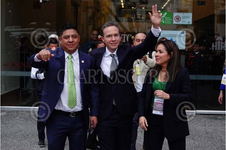 CIUDAD DE MÉXICO, 06SEPTIEMBRE2023.- Manuel Velasco, integrante del PVEM, llega al WTC donde se dará a conocer al ganador o ganadora de la encuesta de Morena para elegir a su candidato presidencial. FOTO: ROGELIO MORALES/CUARTOSCURO.COM