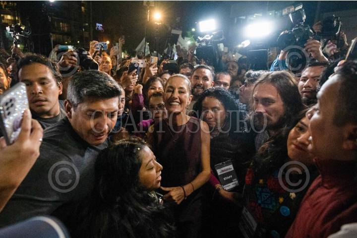 CIUDAD DE MÉXICO, 06SEPTIEMBRE2023.- Claudia Sheinbaum Pardo saluda a simpatizantes al retirarse del WTC tres conocer que ganó las encuestas para encabezar el proyecto presidencial de Morena con miras al 2024. FOTO: ROGELIO MORALES/CUARTOSCURO.COM