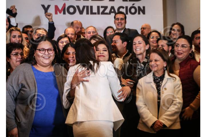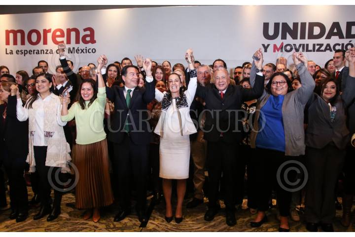 CIUDAD DE MÉXICO, 16OCTUBRE2023.-Claudia Sheinbaum, encabezaron conferencia de prensa con aspirantes a candidaturas de los estados por Morena, donde dieron detalles del proceso para elección de candidaturas. FOTO: ANDREA MURCIA /CUARTOSCURO.COM