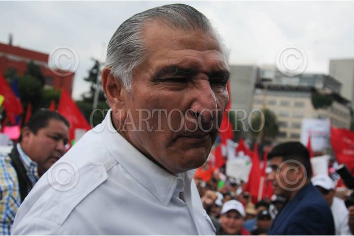 Adán Augusto López al término de su última asamblea Informativa.
