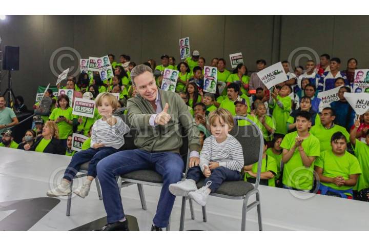Acompañado de sus hijos, Manuel Velasco cerró sus Asambleas informativas de cara a la encuesta de Morena.