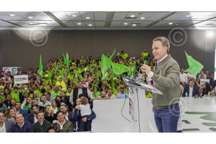 Manuel Velasco habla frente a sus seguidores .