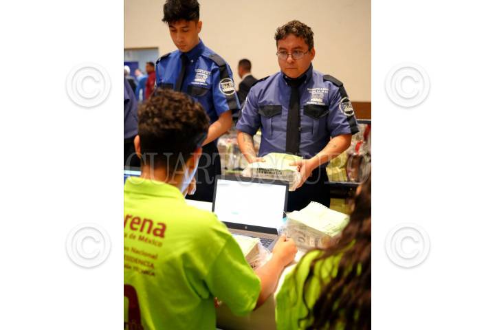 CIUDAD DE MÉXICO, 05SEPTIEMBRE2023.- Elementos de instituciones de seguridad privada, así como visores de los 6 aspirantes a encabezar la campaña presidencial por el partido Movimiento de Regeneración Nacional (MORENA) realizan la apertura y conteo de los paquetes de la encuesta del proceso interno del partido. Será el día de mañana que el presidente Nacional, Mario Delgado, anuncie al que será él o la candidata. FOTO: TOMADA DE REDES/CUARTOSCURO.COM