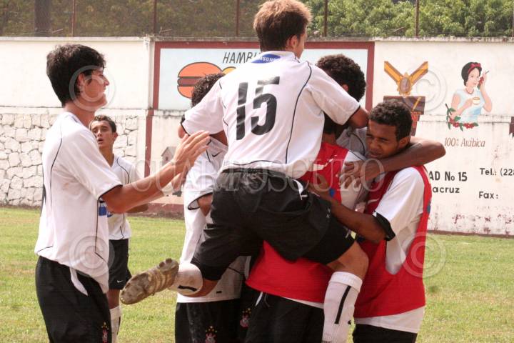 XALAPA, VERACRUZ 22ABRIL2006.- Un jugador del equipo brasileño Corinthians festeja la anotación del primer gol durante el partido para disputarse el tercer lugar. FOTO: Carlos Tischler/CUARTOSCURO.COM