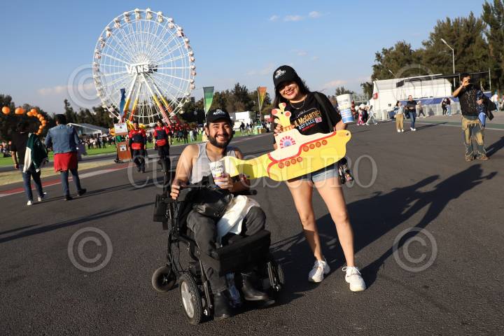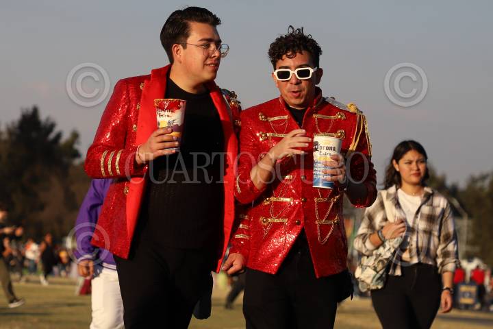 CIUDAD DE MÉXICO, 17NOVIEMBRE2024.- Dos asistentes del Corona Capital llegan al evento con sus chamarras del Sargento Pimienta de The Beatles . FOTO: DANIEL AUGUSTO/ CUARTOSCURO.COM