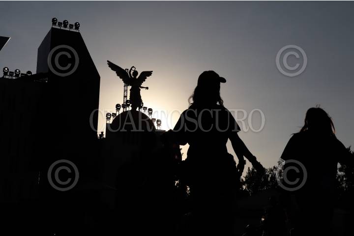 CIUDAD DE MÉXICO, 17NOVIEMBRE2024.- Una réplica del Ángel de la Independencia se encuentra en el escenario principal del festival Corona Capital. FOTO: DANIEL AUGUSTO/ CUARTOSCURO.COM