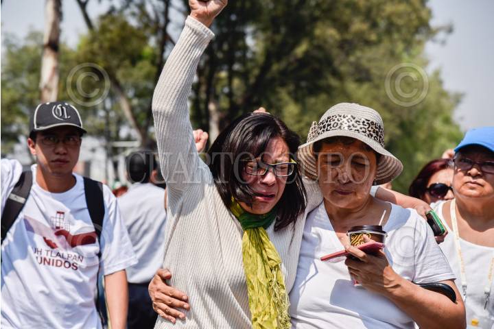 CIUDAD DE MÉXICO, 19OCTUBRE2017.- Vecinos y familiares de las víctimas del multifamiliar de Tlalpan, realizaron un acto memorial, en donde se colocaron coronas, fotografías y veladoras, minuto en silencio y lectura de agradecimiento a las labores de rescate. FOTO: MARIO JASSO /CUARTOSCURO.COM
